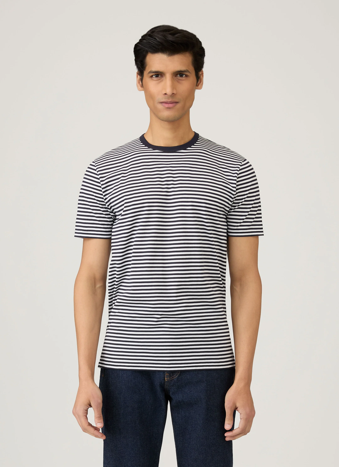 Sunspel Men’s Classic Short Sleeve T-Shirt - Navy/White English Stripe