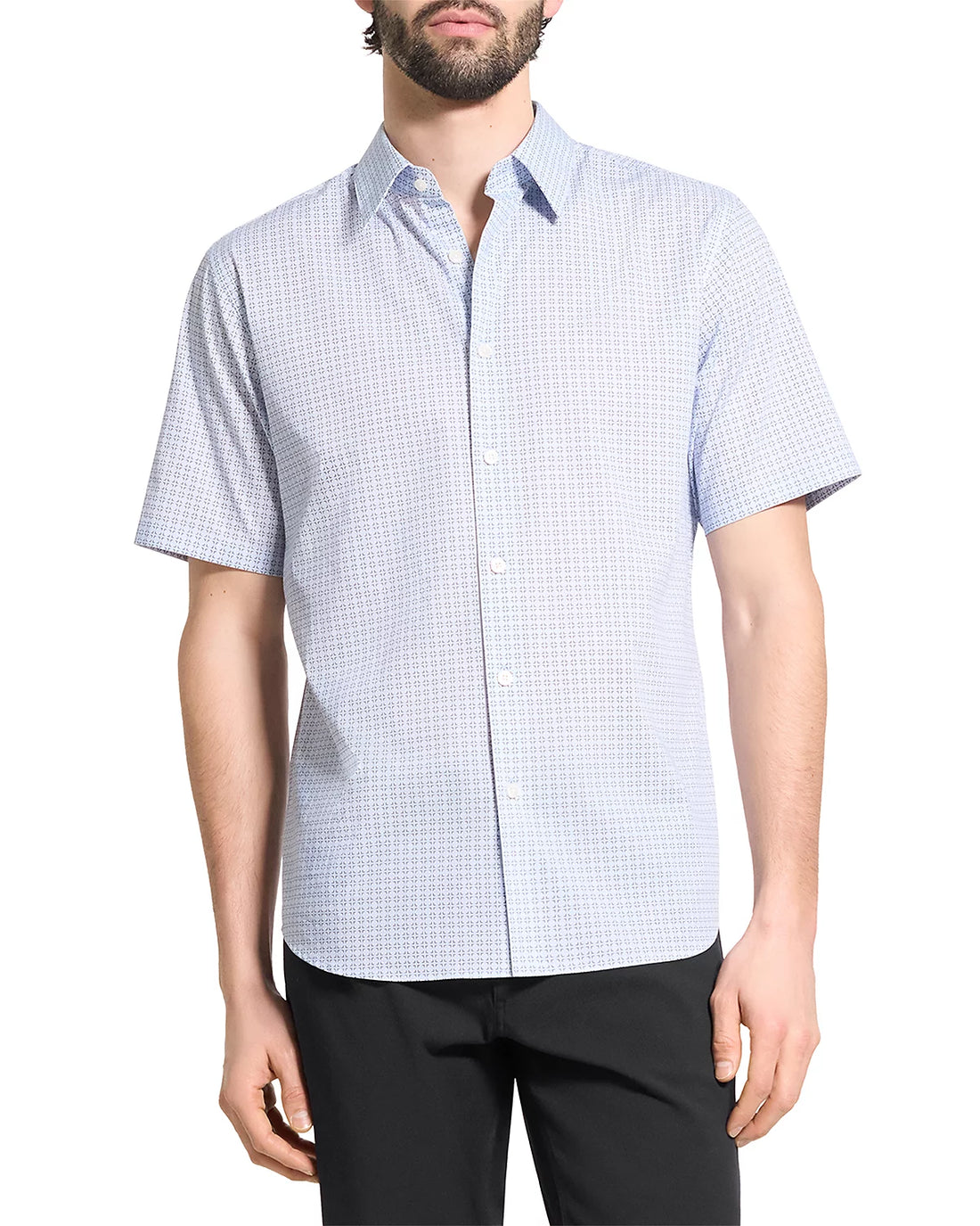 Theory Men’s Irving Short-Sleeve Button Down Shirt in Geometric Cotton