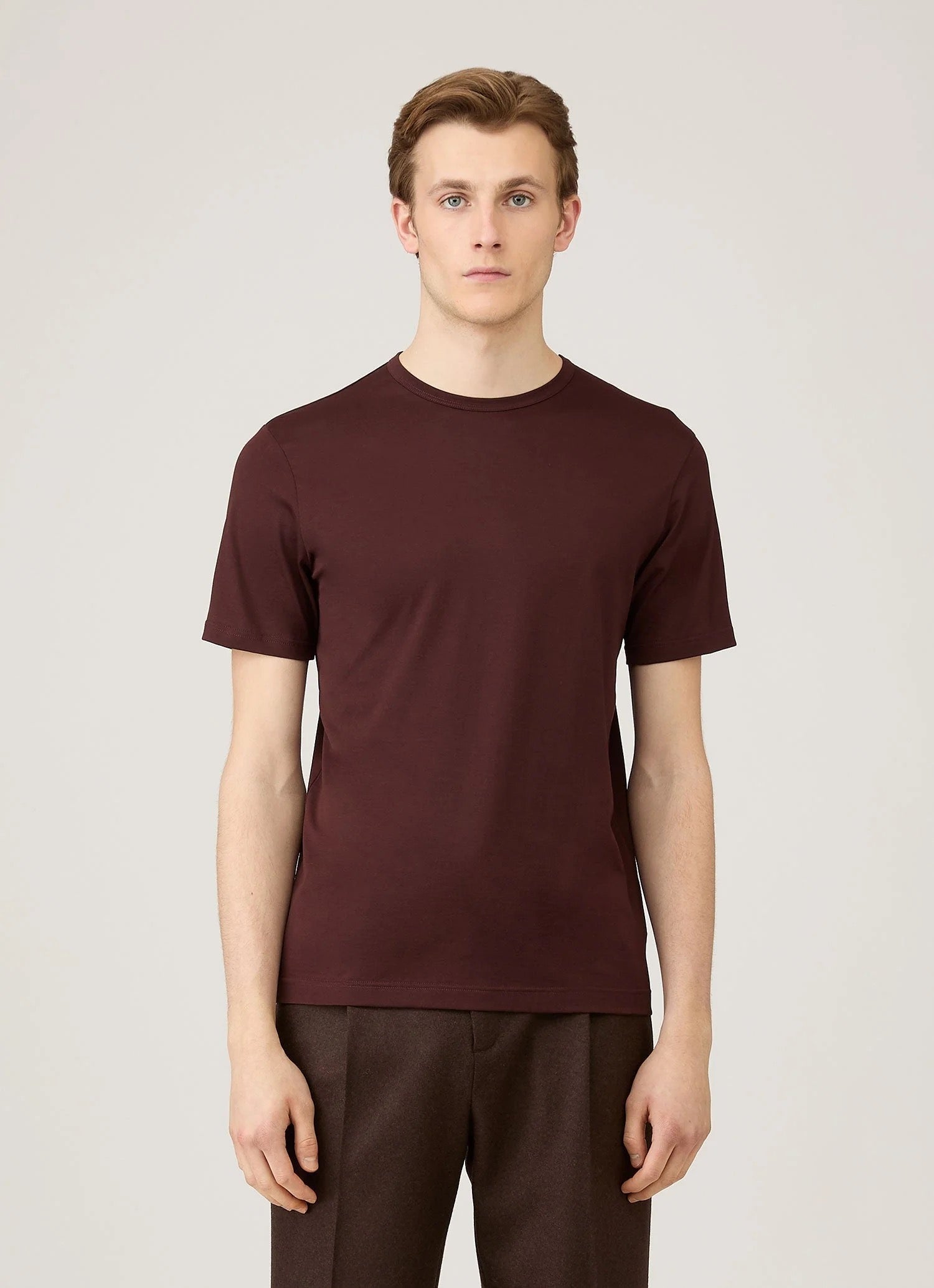 This unique Sunspel fabric is lightweight, durable, and exceptionally smooth against the skin. With a slim fit and timeless design, it is an essential wardrobe staple, offering both comfort and style.