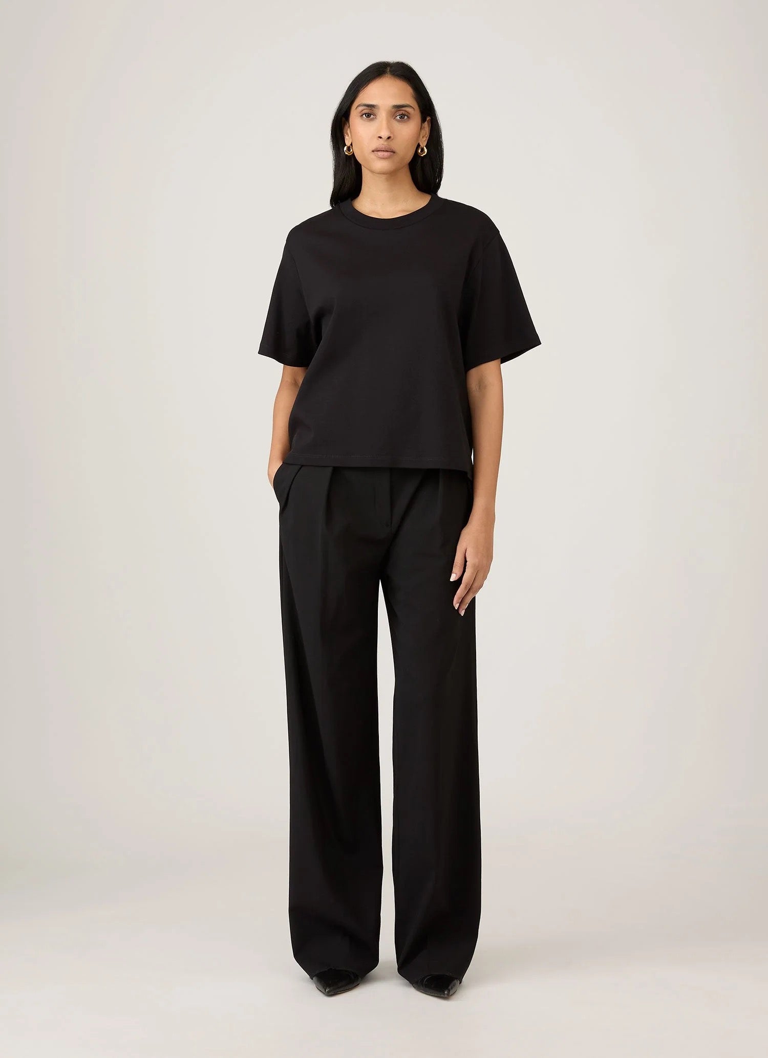A boxy, heavyweight T-shirt with a slightly cropped, relaxed silhouette—ideal for layering or wearing solo. Crafted from Sunspel’s carbon-brushed Supima cotton jersey, it combines substantial seasonal weight with exceptional softness against the skin. A refined wardrobe essential that delivers comfort, structure, and versatility.