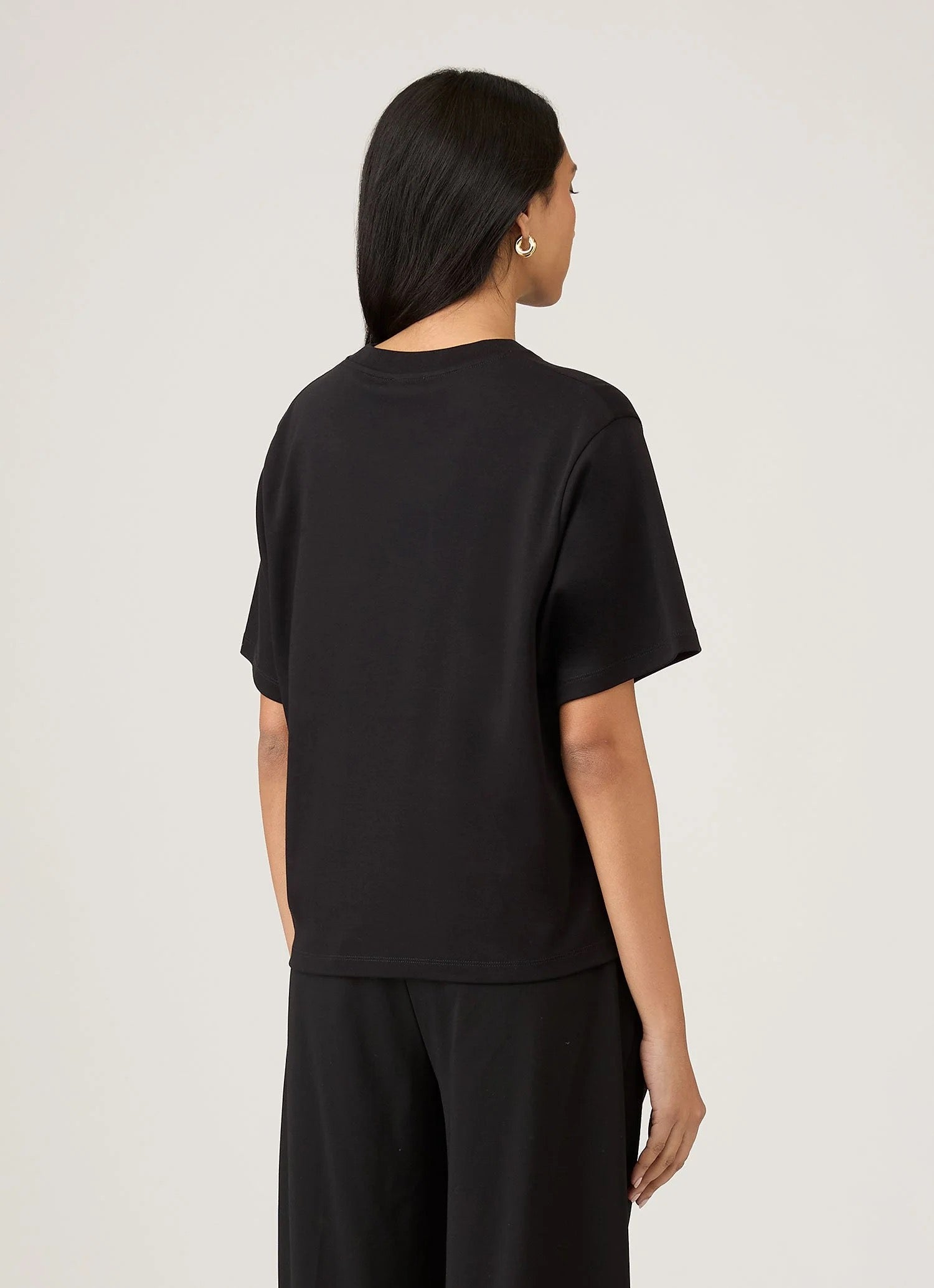 This T-shirt is cut for a boxy fit. Compare measurements to a similar garment you own for best results: