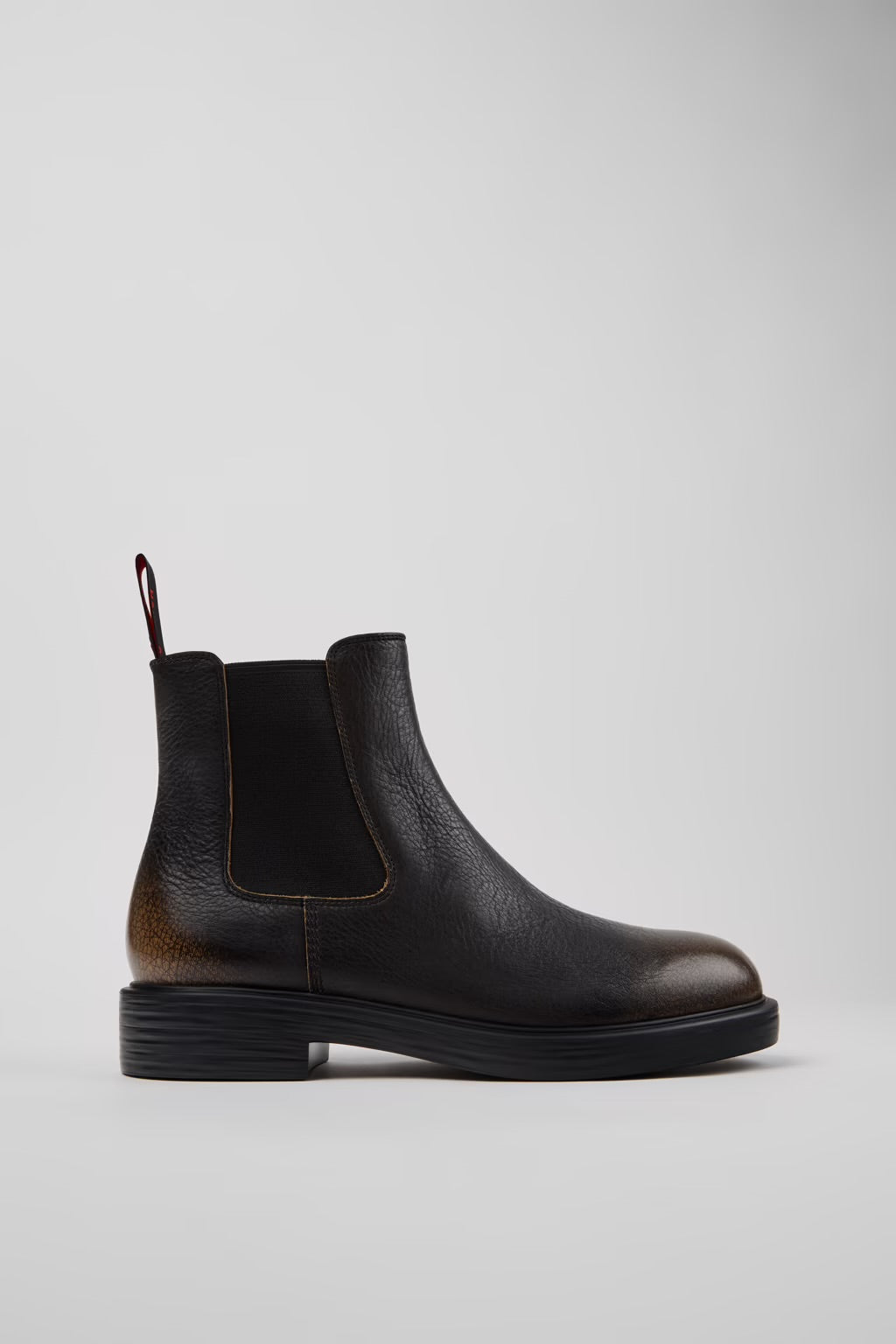 Black and brown calfskin leather ankle boots for men with OrthoLite® Recycled™ footbeds and XL EXTRALIGHT® EVA outsoles.