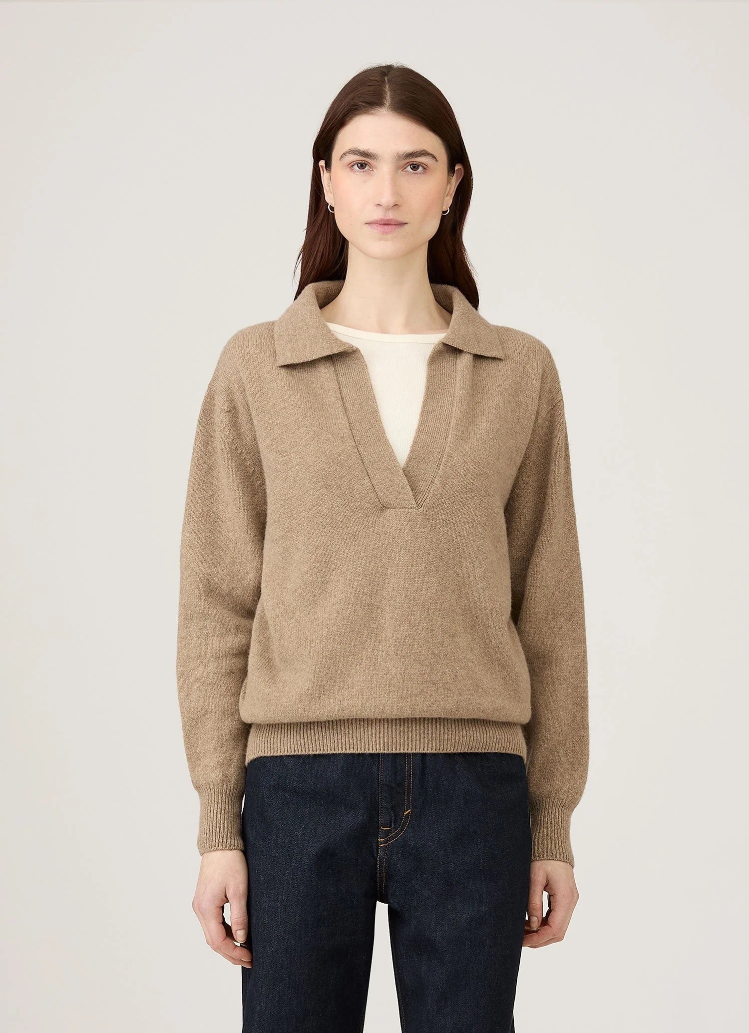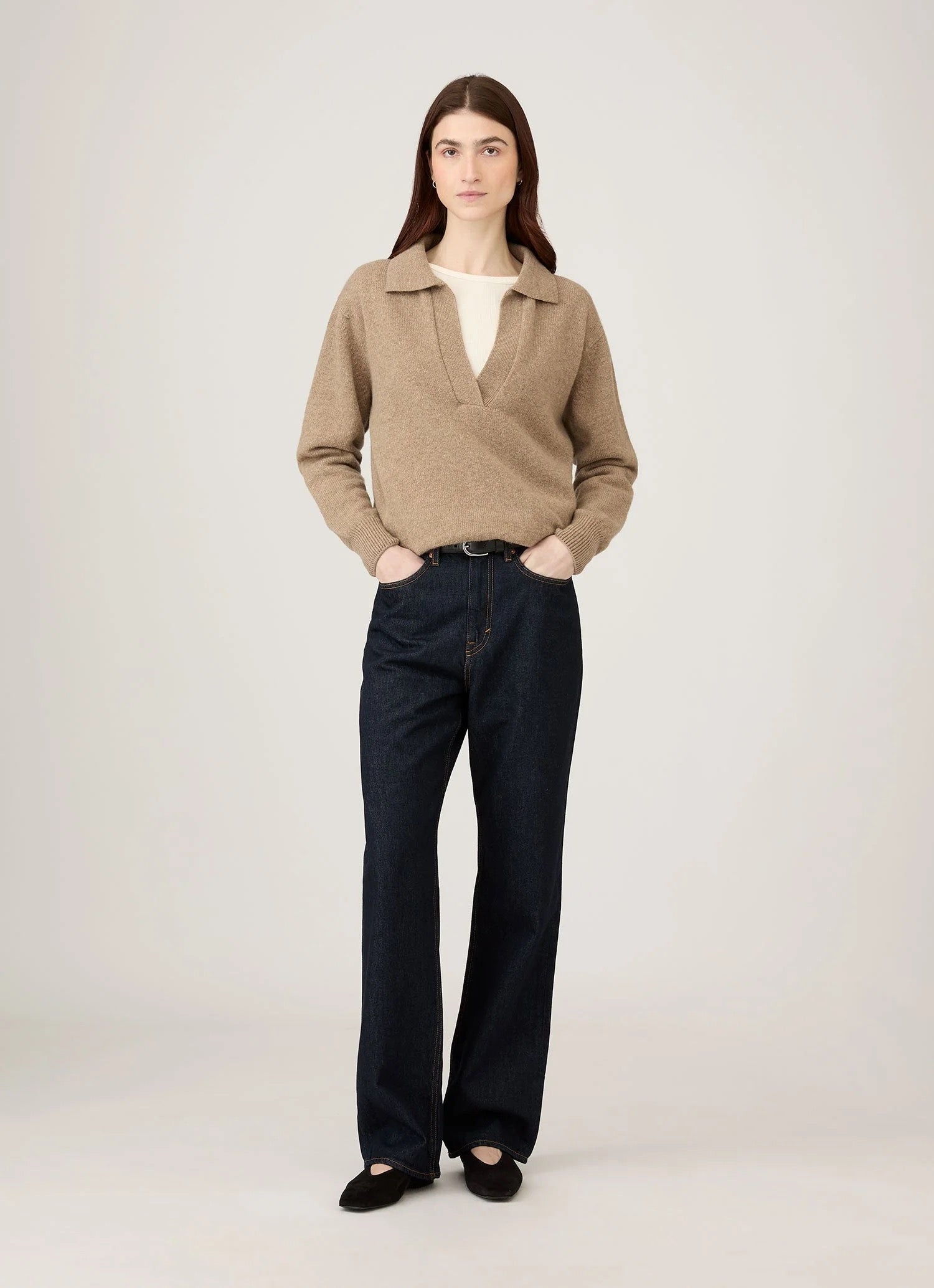 Featuring a deep polo neckline and set-in sleeves, it offers a clean, feminine silhouette with effortless versatility, making it an ideal everyday layer for the colder months.