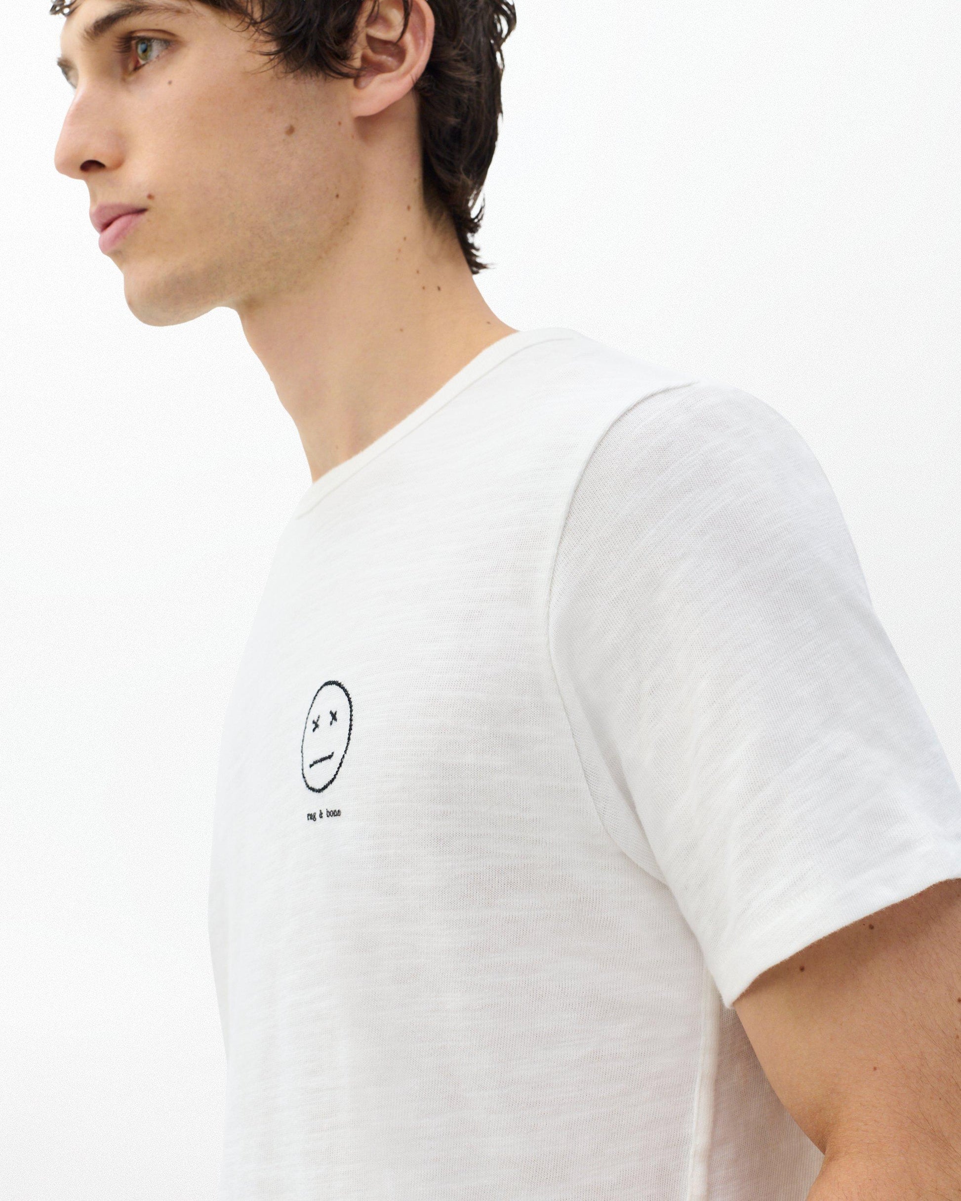 From the archive. Back with new expression. First hand-sketched in 2014, Sour Face is rag & bone’s deadpan ode to New York: sharp, unfazed, and running on caffeine and grit. No logos. No drama. Just clean lines, solid craft, and a bit of attitude. Embroidered on the Classic Flame tee made from long-staple Peruvian cotton that's durable and soft.