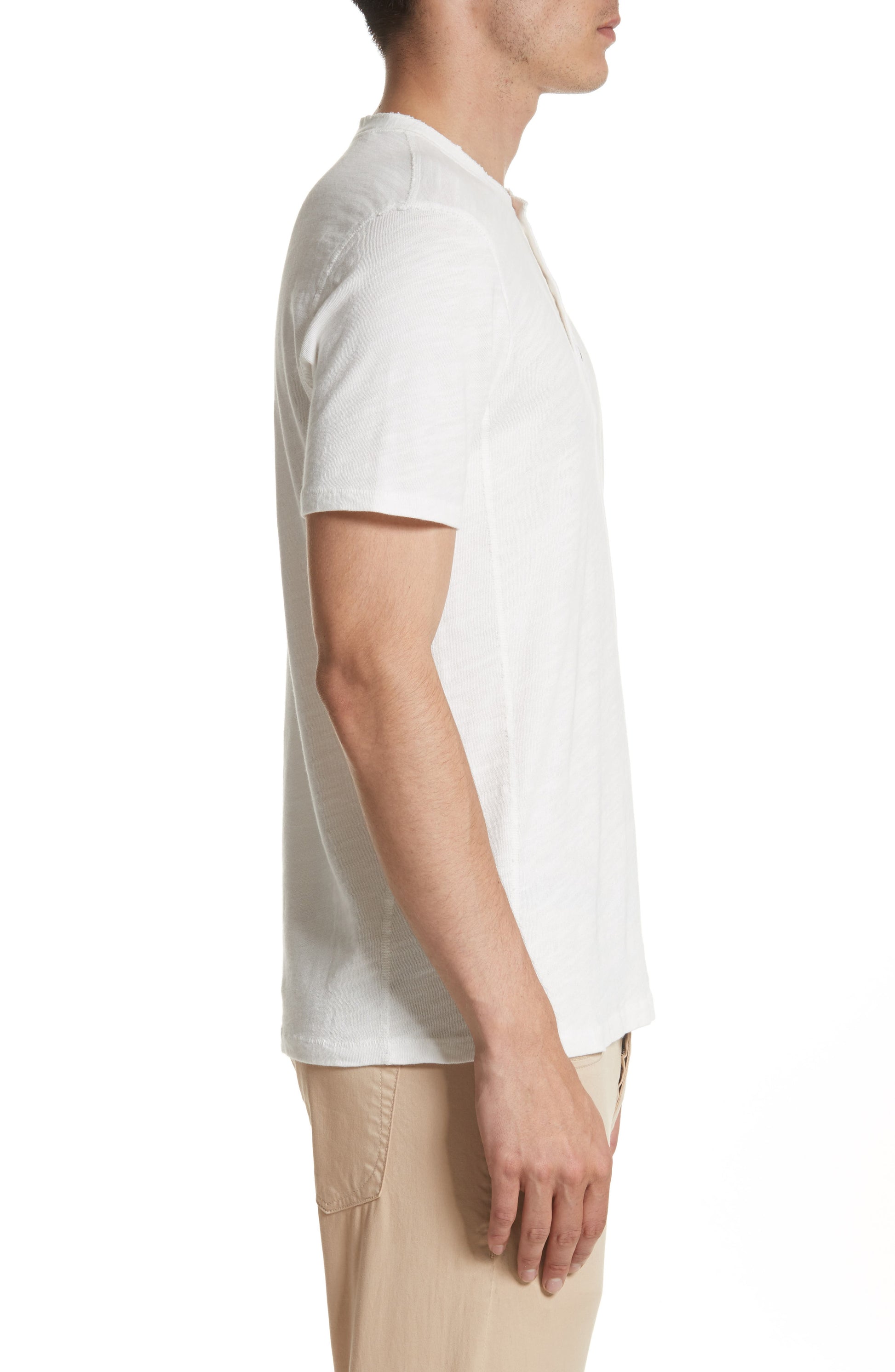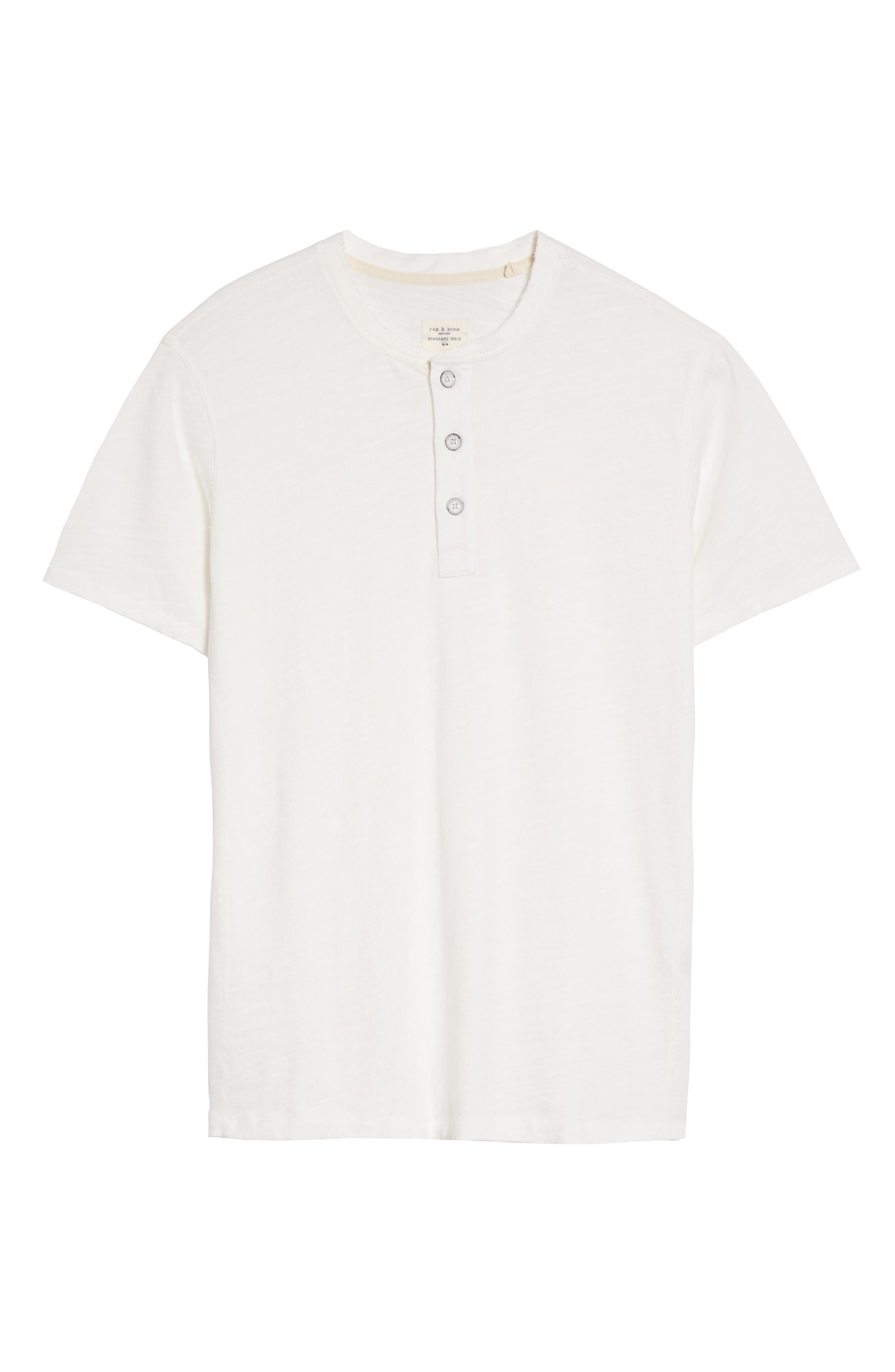 This classic short-sleeve Henley from Rag & Bone serves as the perfect base layer. Crafted from exceptionally soft slub Peruvian cotton jersey, it features a clean crew neckline and a traditional button placket, offering both comfort and timeless style.