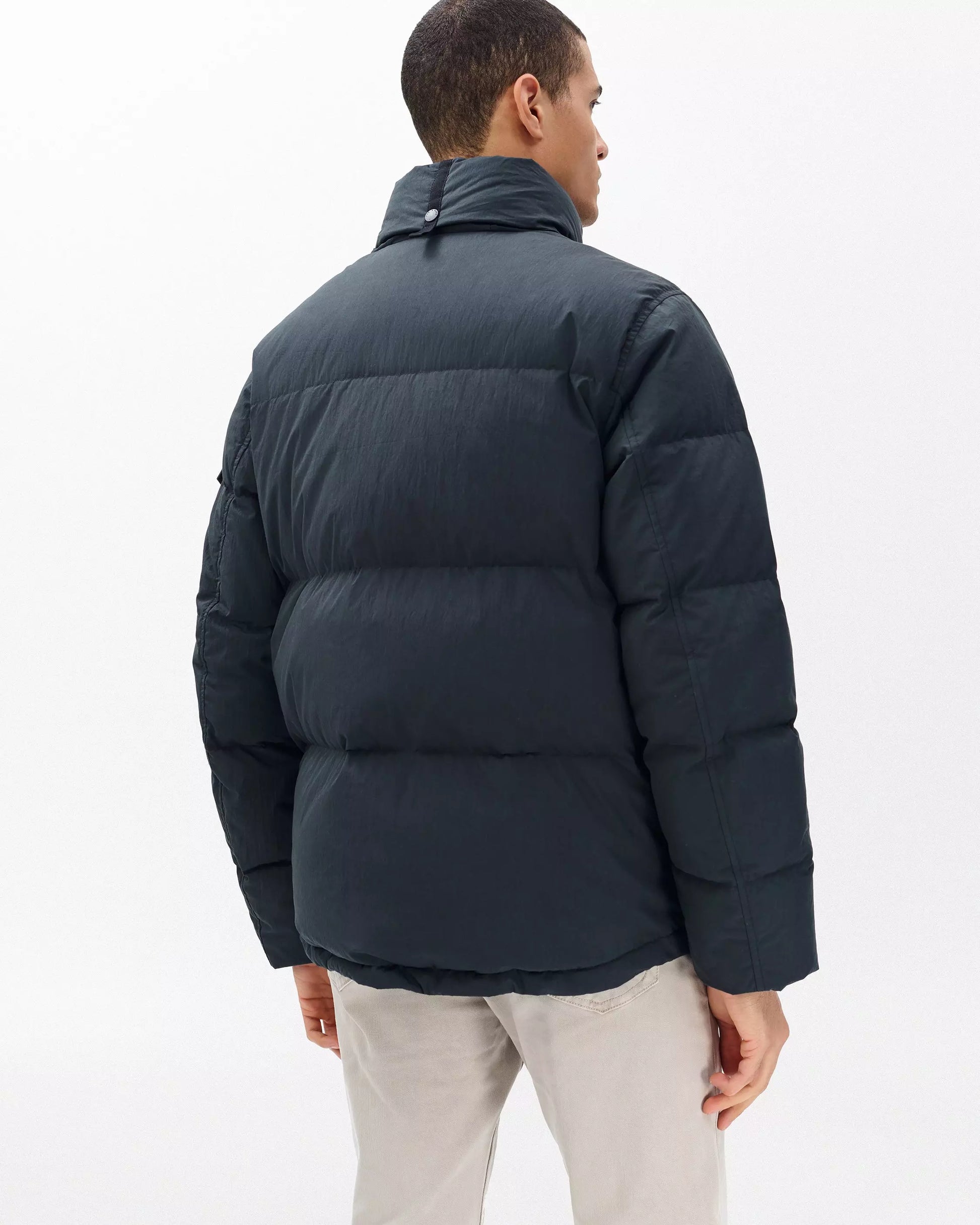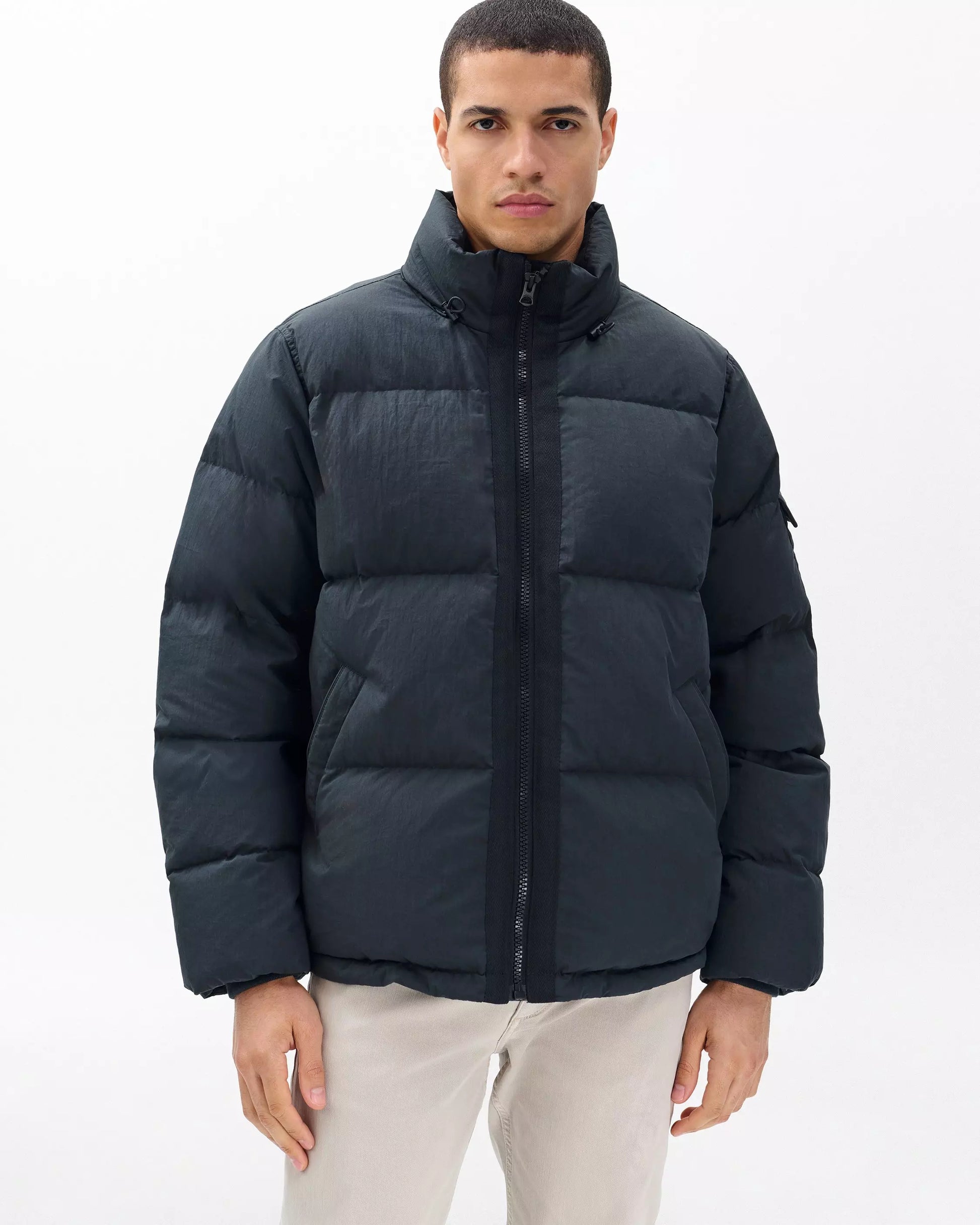 The Daniel Down Jacket combines a durable cotton-blend shell with insulating down fill and practical, storm-ready features. A stowable hood, hidden snap pockets, and adjustable drawcords at the hem and funnel neck allow for a customizable fit. Finished with a custom lining and subtle signature details, this jacket delivers both style and functionality for everyday wear.
