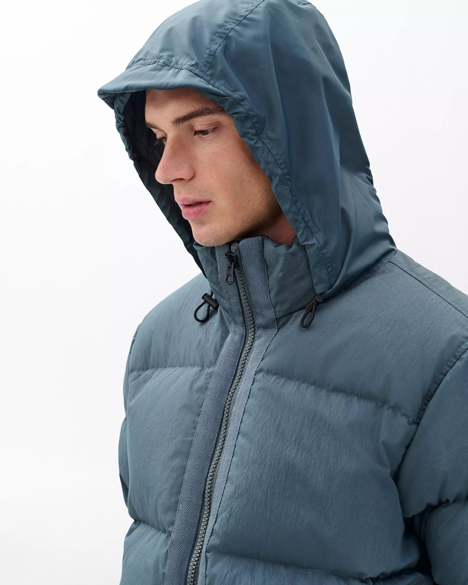 The Daniel Down Jacket is a versatile, insulated outerwear piece crafted from a durable cotton-blend shell with premium down fill. Designed for both performance and style, it features storm-ready details including a stowable hood, hidden snap pockets, and adjustable drawcords at the hem and funnel neck for a customized fit. Finished with a signature custom lining and subtle brand details, it offers refined functionality for everyday wear.
