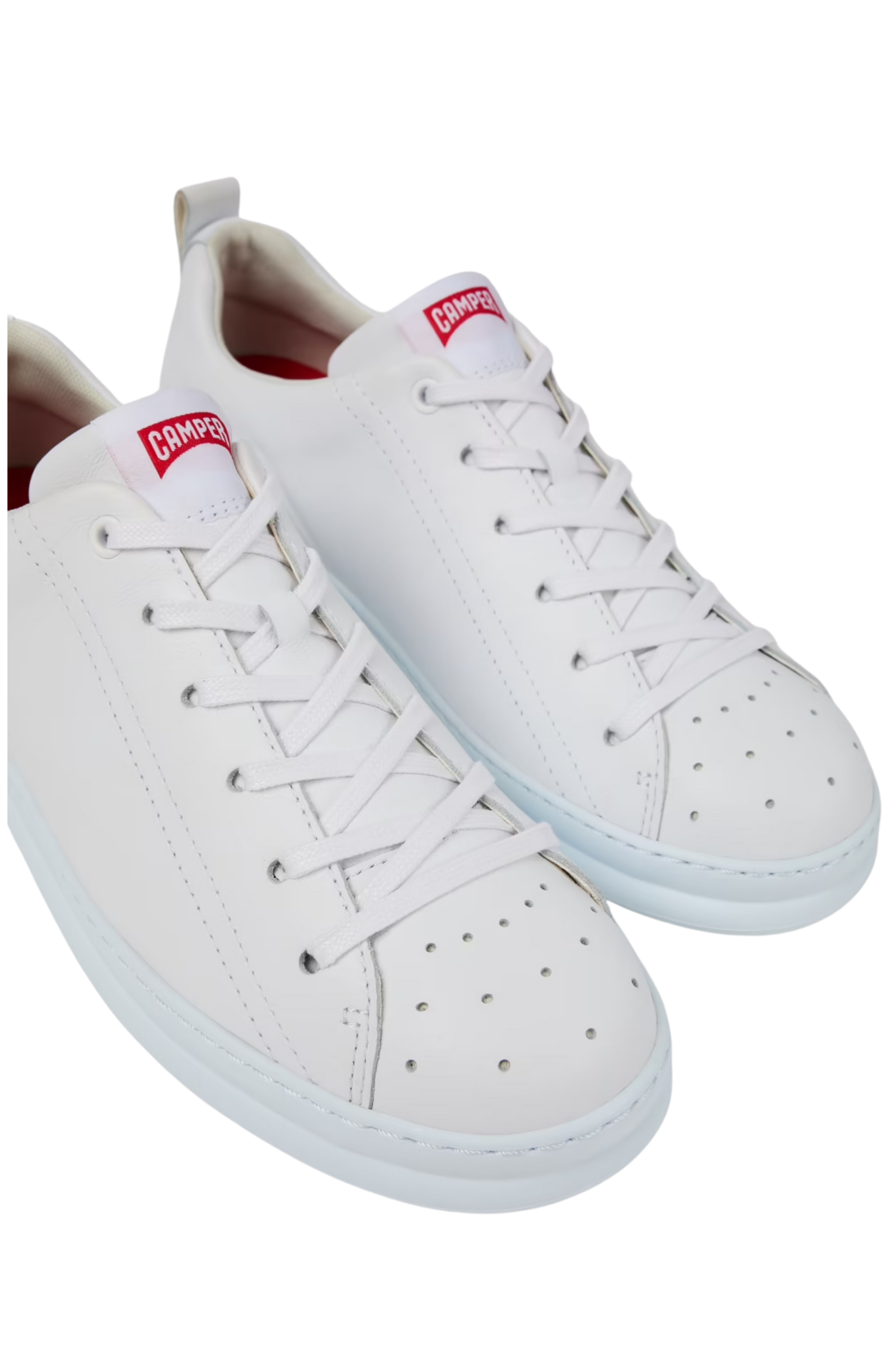 Crafted from premium white calfskin leather, the Camper Runner reinterprets the brand's classic '80s silhouette with modern comfort and refined simplicity. Featuring breathable perforations, OrthoLite® Recycled™™ footbeds, and lightweight XL EXTRALIGHT® EVA outsoles, these sneakers deliver exceptional cushioning and all-day ease.