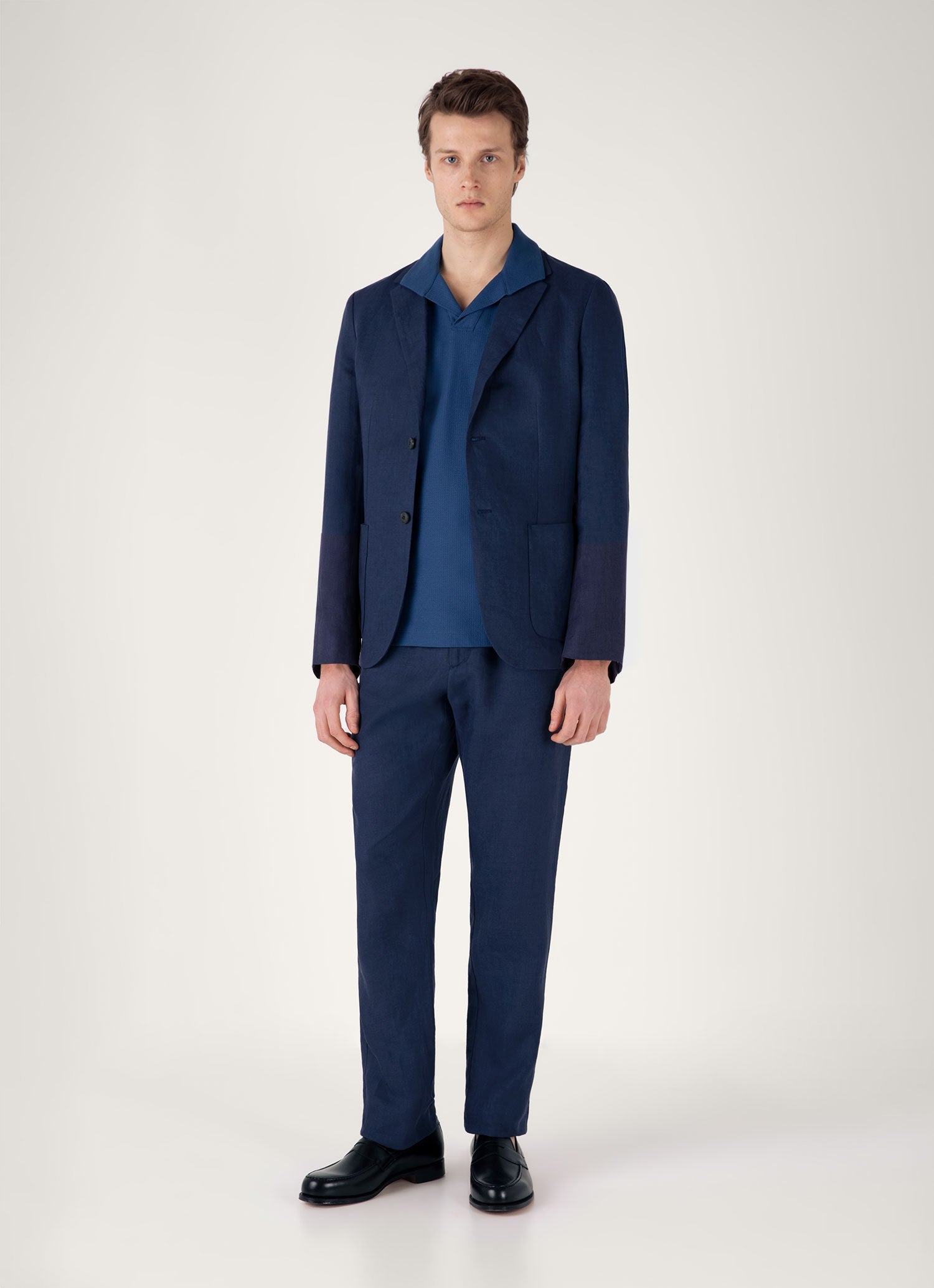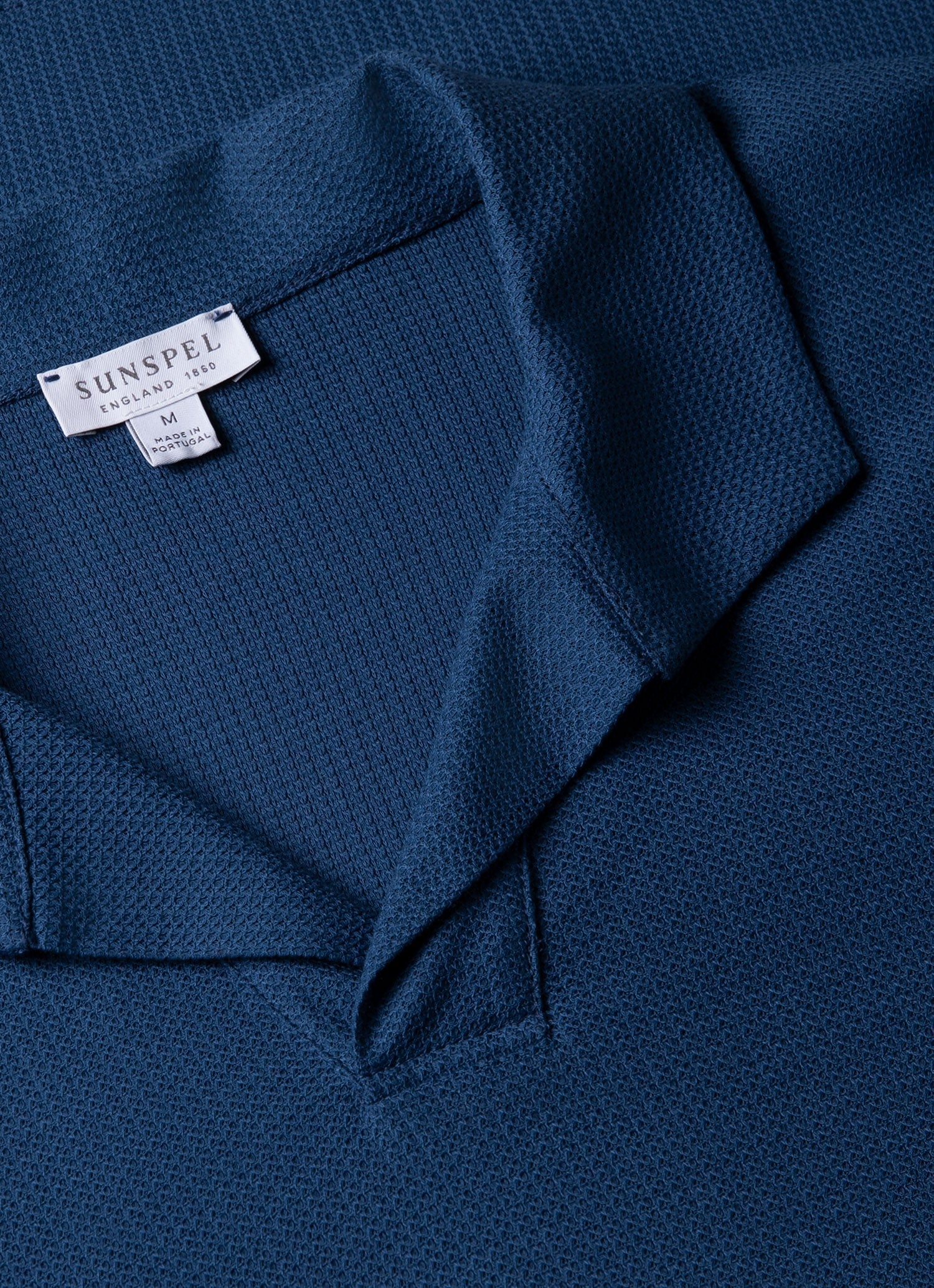 A smart, elegant polo crafted from refined Italian textured jersey, inspired by mesh fabrics in our archive. Lightweight and soft, it has a regular fit, side slits, and an open, buttonless collar. A perfect piece for holiday evenings, dressed up or down.