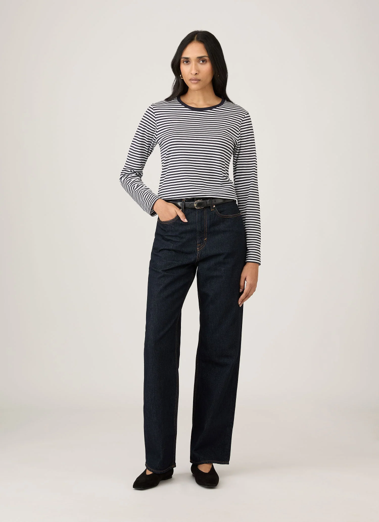 Handcrafted in Sunspel's Long Eaton factory in England, this long sleeve version of the Classic T-Shirt is made from the finest extra-long staple Supima cotton, fully traceable to its Californian farm of origin. Maintaining the same body-skimming silhouette as the original, it features full-length sleeves for added coverage, making it an ideal layering piece with versatile styling options.