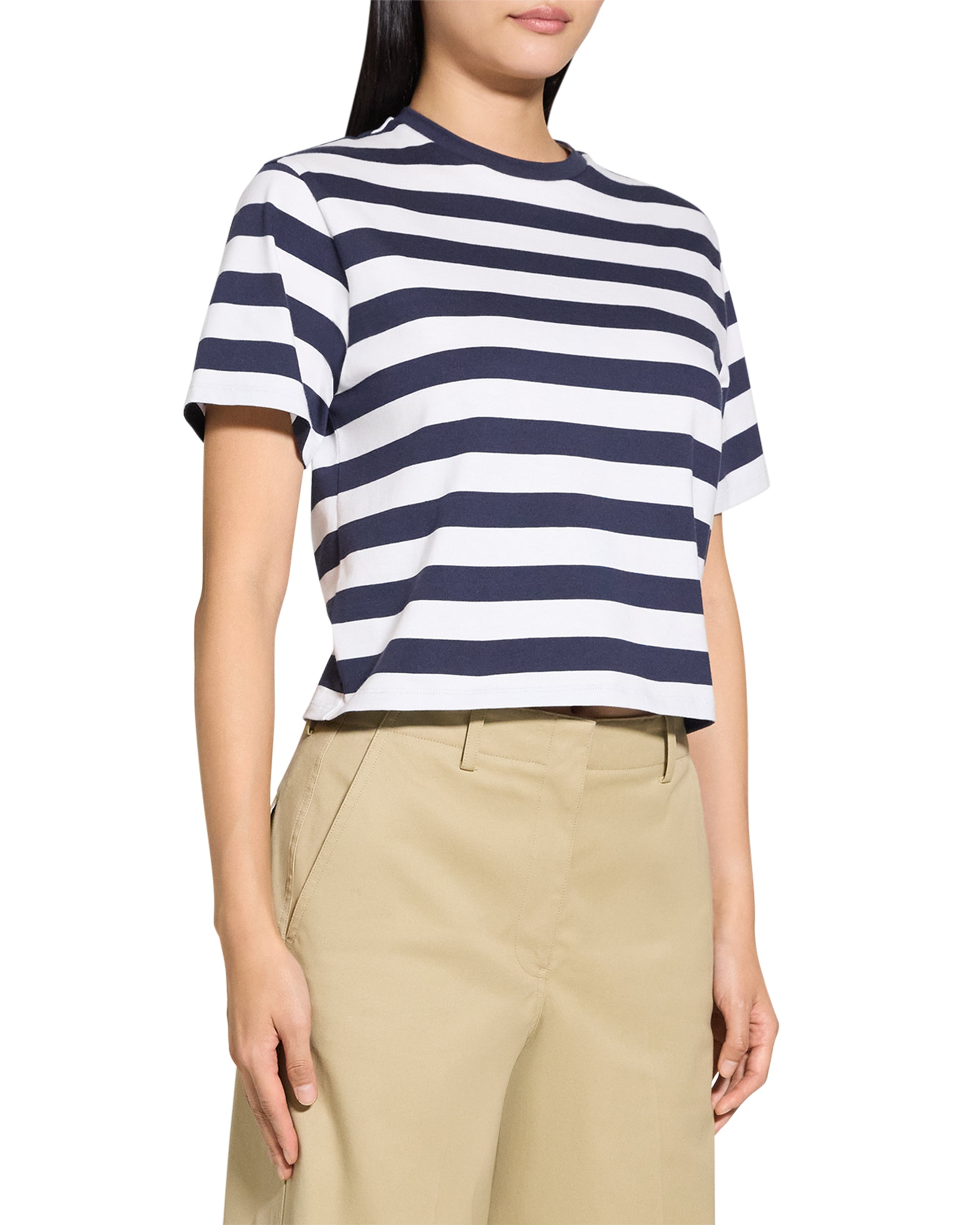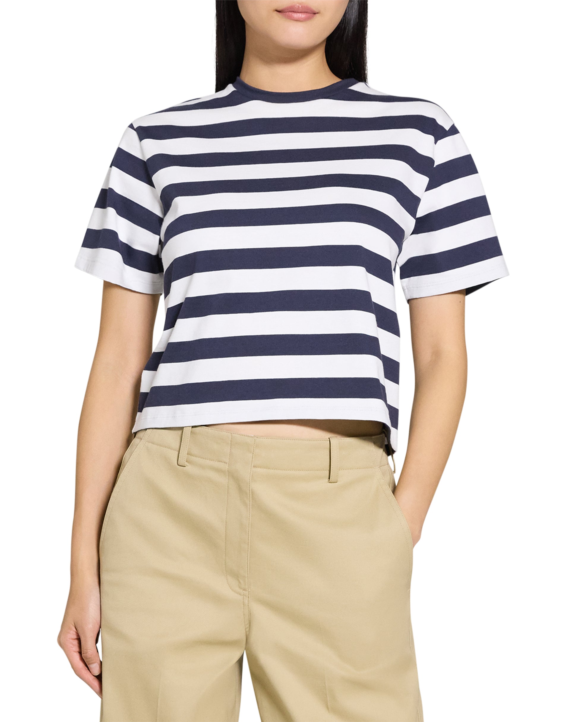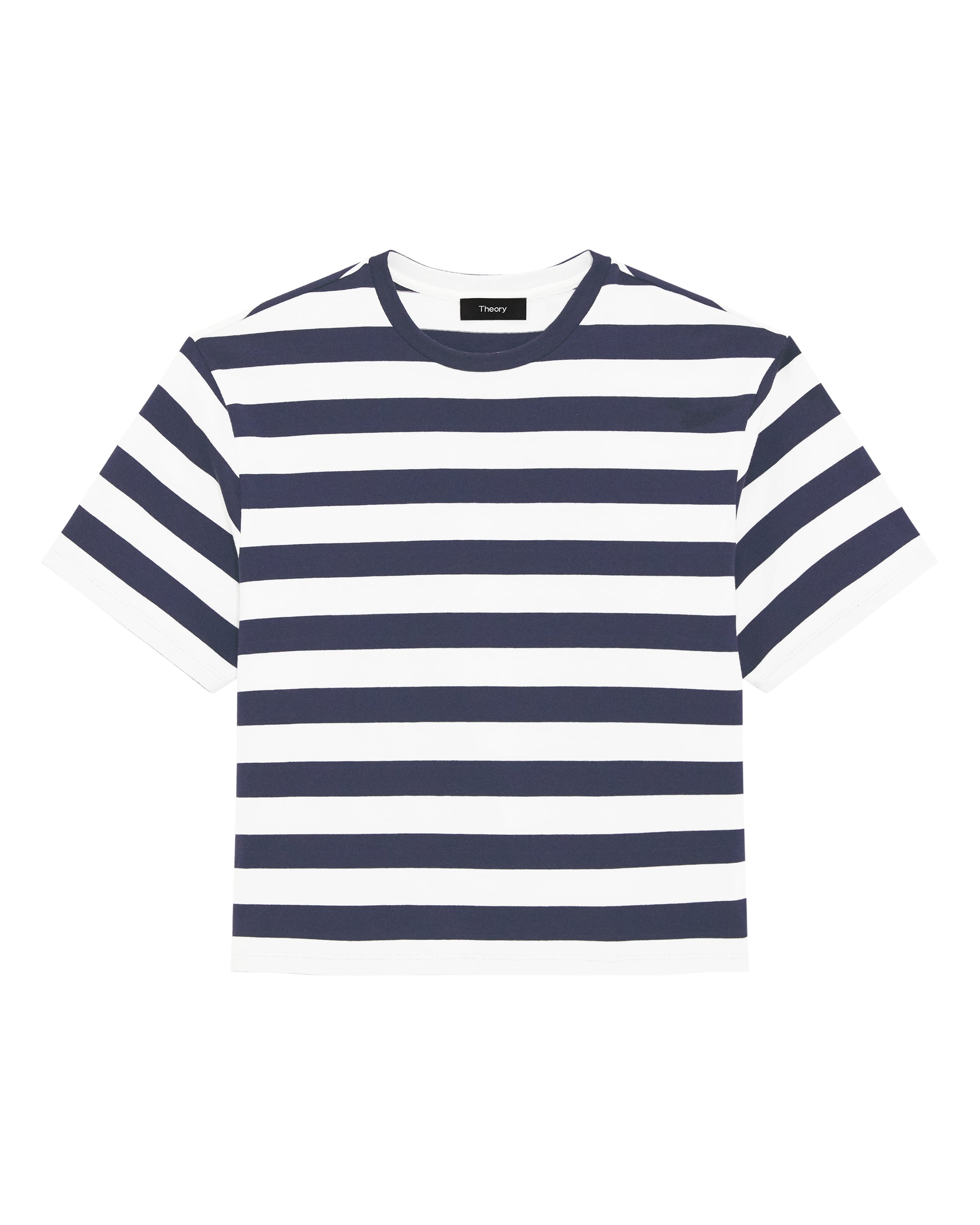 Theory Women's Boxy Crewneck Tee in Striped Cotton