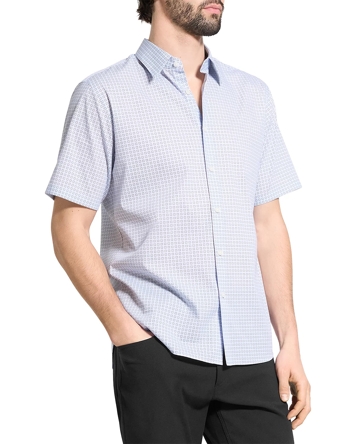 Theory Men’s Irving Short-Sleeve Button Down Shirt in Geometric Cotton