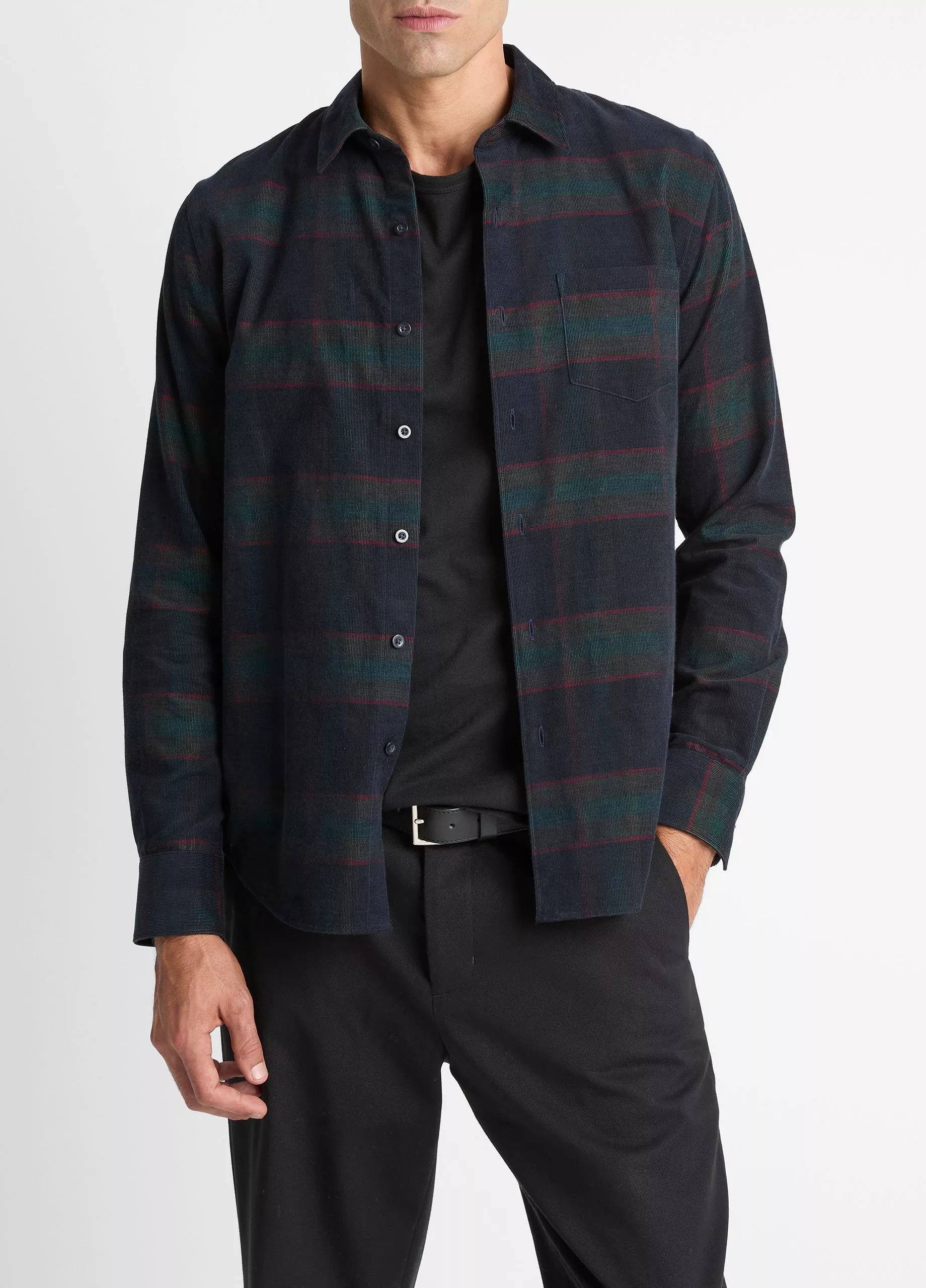 This classic plaid button-up was designed with colder weather in mind, crafted from 100% cotton corduroy for a soft, cozy feel. Wear it alone or unbuttoned over your favorite tee.